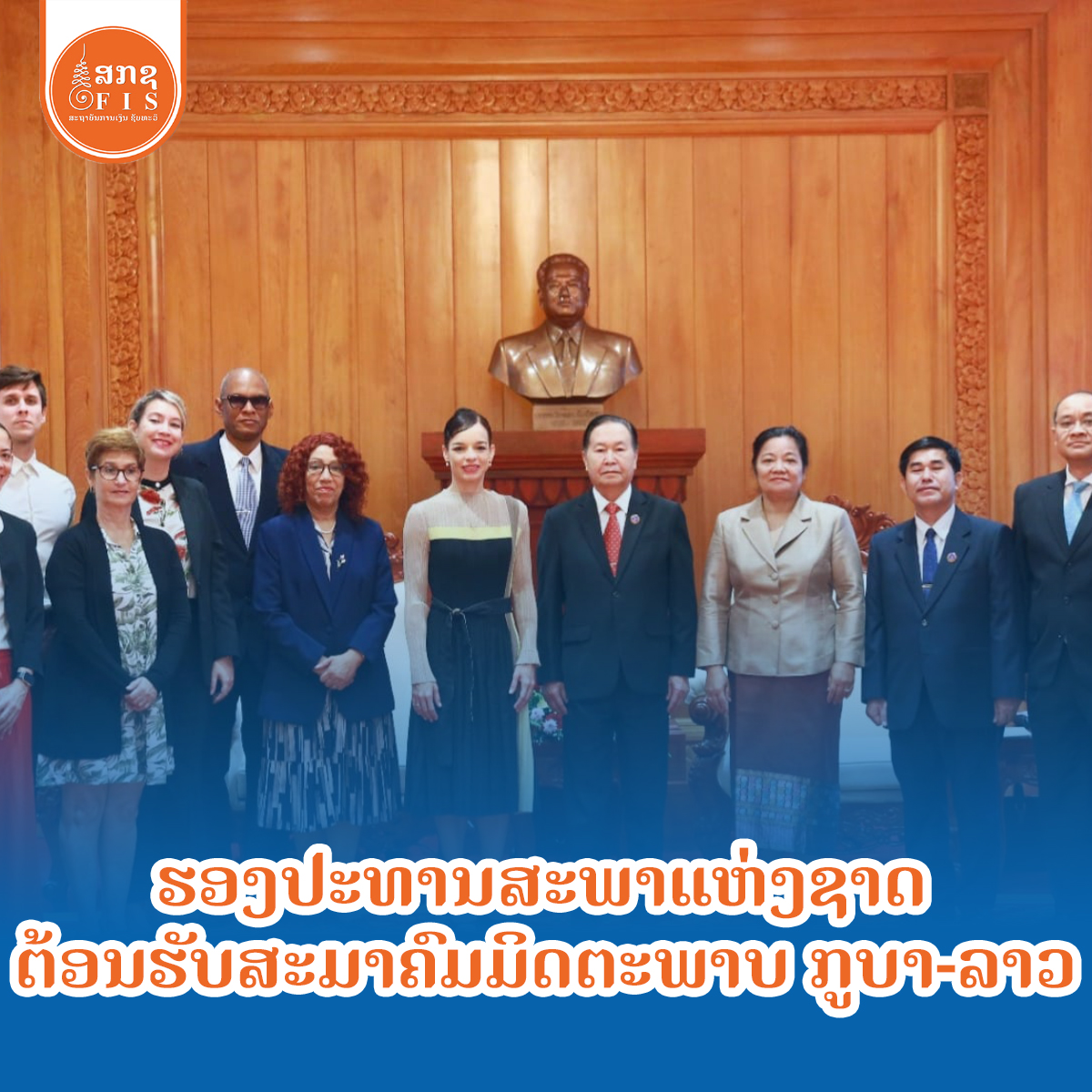 (ສພຊ) – ຕອນເຊົ້າວັນອາທິດທີ 1 ທັນວານີ້ ທີ່ສະພາແຫ່ງຊາດ, ສະຫາຍ ສຈ. ປອ. ຈະເລີນ ເຍຍປາວເຮີ ຮອງປະທານສະພາແຫ່ງຊາດ, ປະທານສະມາຄົມມິດຕະພາບ ລາວ-ກູບາ ໄດ້ຕ້ອນຮັບສະຫາຍ ນາງ ວຽງໄຊ ວານເດສ ຮັກສາການປະທານສະມາຄົມມິດຕະພາບ ກູບາ-ລາວ, ຜູ້ອໍານວຍການ ຟ້ອນບາເລ່ ແຫ່ງຊາດກູບາ ພ້ອມດ້ວຍຄະ ນະ ໃນໂອກາດມາຢ້ຽມຢາມ, ເຮັດວຽກ ແລະ ສະແດງສິ ລະປະຟ້ອນບາເລ່ ເພື່ອສະເຫຼີມສະຫຼອງວັນສ້າງຕັ້ງສາຍພົວພັນການທູດຂອງ ລາວ-ກູບາ ຄົບຮອບ 50 ປີ (04/11/1974-04/11/2024) ຢູ່ ສປປລາວ ແຕ່ວັນທີ 30 ພະ ຈິກ – 02 ທັນວາ 2024.