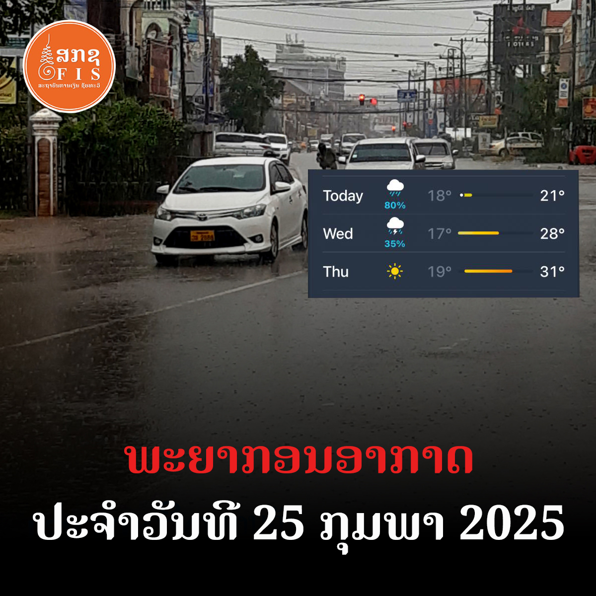 ພະຍາກອນອາກາດ ປະຈໍາວັນທີ 25 ກຸມພາ 2025, ເວລາ 06 ໂມງ 00