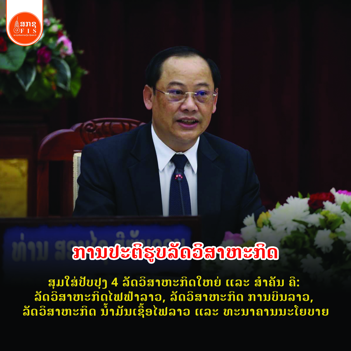 ສຸມໃສ່ປັບປຸງ 4 ລັດວິສາຫະກິດໃຫຍ່ ແລະ ສໍາຄັນ ຄື: ລັດວິສາຫະກິດໄຟຟ້າລາວ, ລັດວິສາຫະກິດ ການບິນລາວ, ລັດວິສາຫະກິດ ນໍ້າມັນເຊື້ອໄຟລາວ ແລະ ທະນາຄານນະໂຍບາຍ