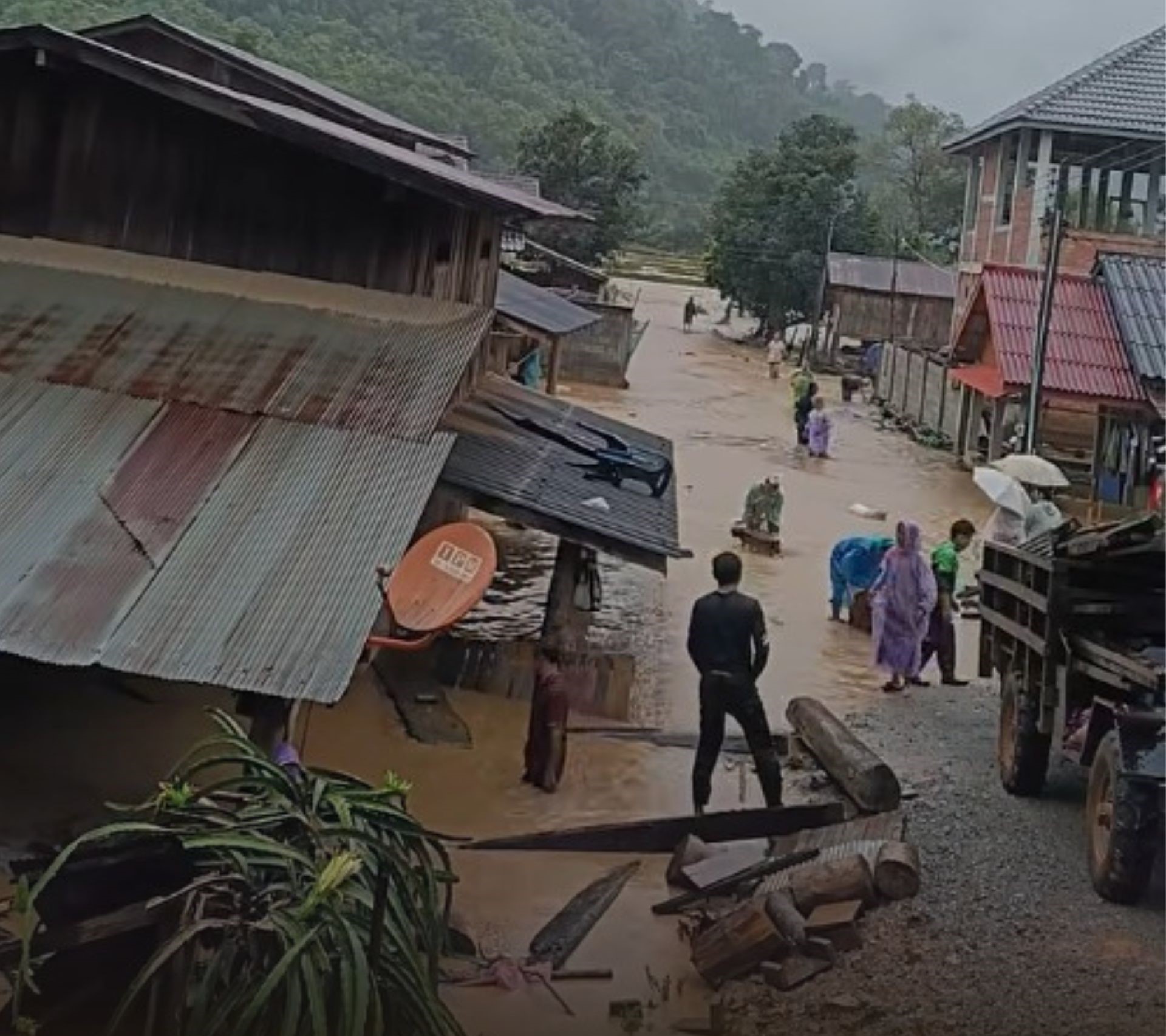 ຝົນຕົກໜັກຕິດຕໍ່ກັນຫລາຍວັນ ເຮັດໃຫ້ຕອນເຊົ້າວັນທີ 16 ກໍລະກົດ 2025 ໄດ້ເກີດນໍ້າຖ້ວມຊຸກະທັນຫັນ ຢູ່ບ້ານມ່ວງ ເມືອງຄອບ ແຂວງໄຊຍະບູລີ ເຮັດໃຫ້ປະຊາຊົນຂົນເຄື່ອງອອກບໍ່ທັນ ໄຫລຖ້ວມເຮືອນ ແລະ ໄຮ່ນາ ໄດ້ຮັບຄວາມເສຍຫາຍ