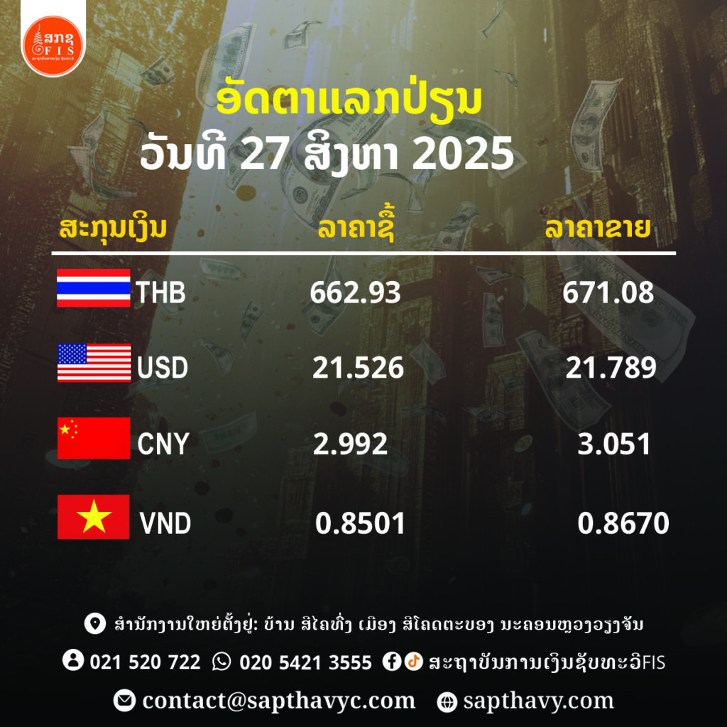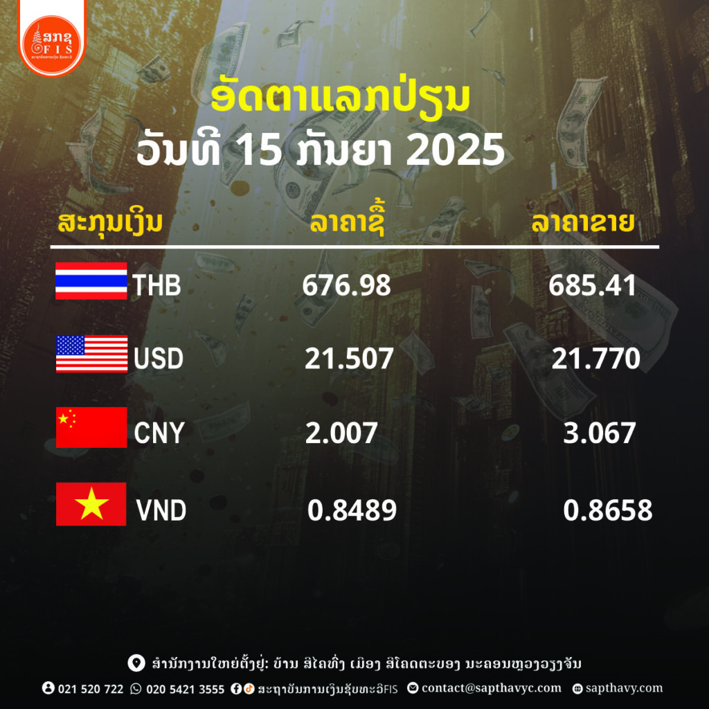 ແຈ້ງປັບລາຄານໍ້າມັນເຊື້ອໄຟທຸກປະເພດ​ ​ເລີ່ມ​ 6:00​ ໂມງເຊົ້າ ຂອງວັນທີ​ 18 ກັນຍາ​ 2025 ນີ້ ! ກົມການຄ້າພາຍໃນ ກະຊວງ ອຸດສະຫະກຳ​ ແລະ ການຄ້າ​ ໄດ້ອອກແຈ້ງການເລກທີ 1313/ກຄພນ, ລົງວັນທີ 17 ກັນຍາ […]